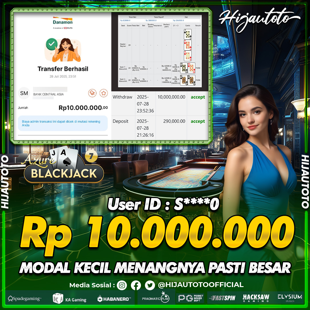 β¨ JACKPOT DI LIVE CASINO AZURE BLACKJACK β¨