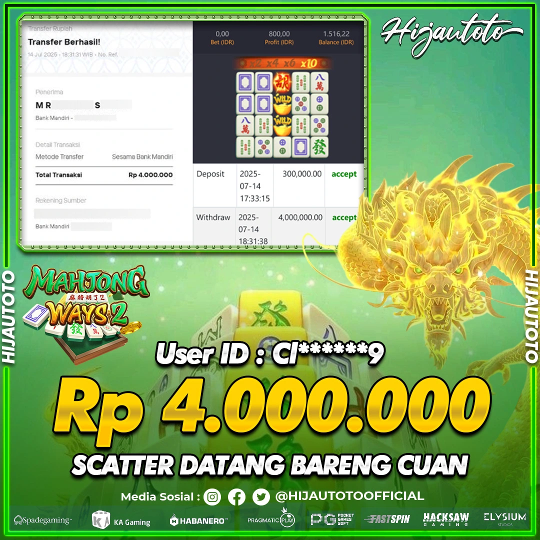 Selamat datang di HIJAUTOTO, tempatnya seru-seruan dan cuan besar! Mulai main cukup dengan modal Rp5.000 aja, taruhan super murah dari Rp100 perak! Mau main slot yang penuh warna? Atau togel dari 20 pasaran paling hits? Atau mungkin tembak ikan yang bikin deg-degan? Tenang, ada juga taruhan bola, sabung ayam, dan live casino yang bikin suasana makin hidup! Daftar sekarang dan dapetin bonus new member 100% langsung, biar modalmu makin tebal. Deposit gampang banget, bisa pakai QRIS, dan kalau butuh bantuan, customer service kita siap 24 jam nonstop. Jadi, tunggu apa lagi? Yuk, gabung dan bawa pulang kemenangannya cuma di HIJAUTOTO!