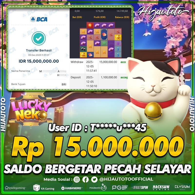 Selamat Kepada Member HIJAUTOTO TE*********45 Telah Jackpot Di SLOT LUCKY NEKO