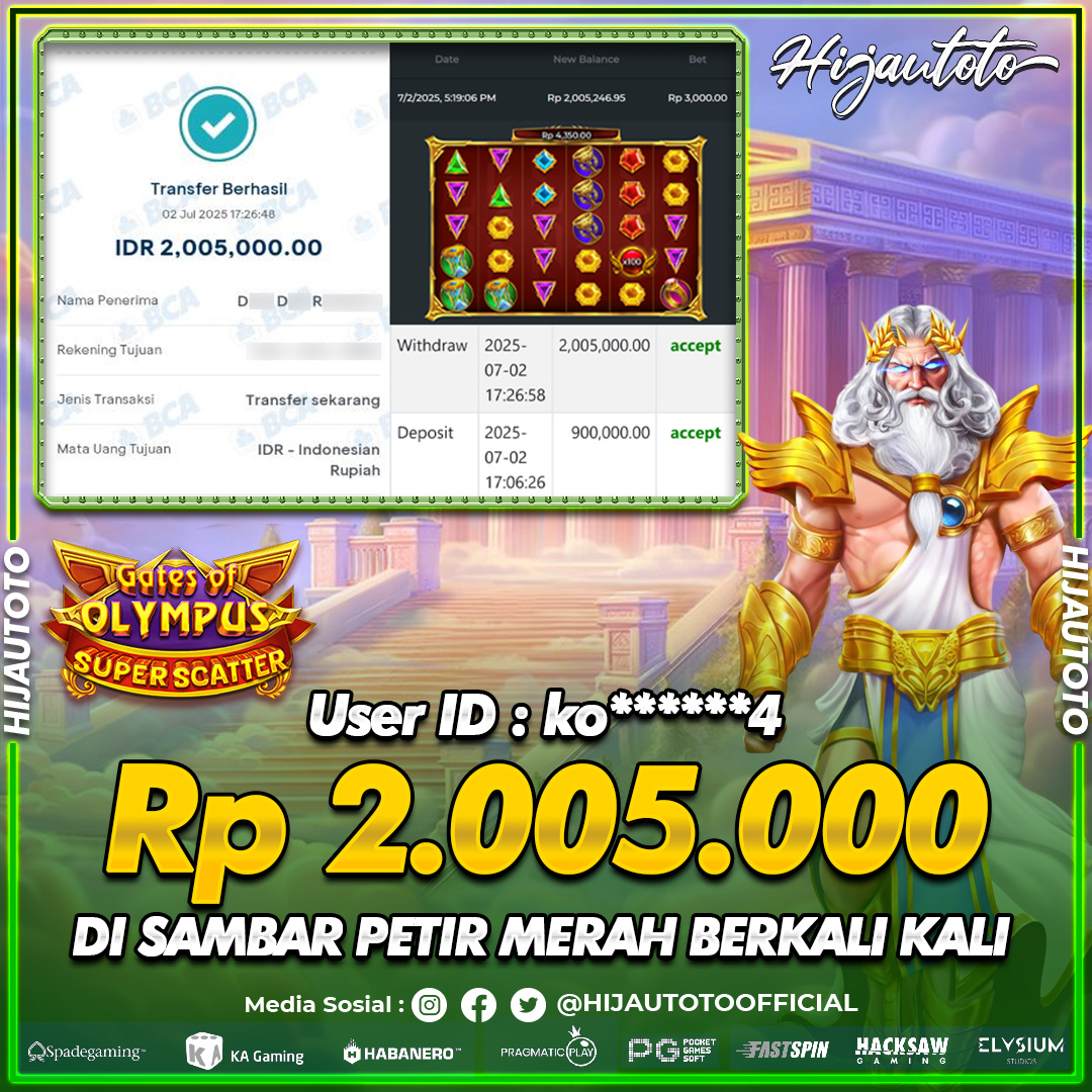 Selamat datang di HIJAUTOTO, tempatnya seru-seruan dan cuan besar! Mulai main cukup dengan modal Rp5.000 aja, taruhan super murah dari Rp100 perak! Mau main slot yang penuh warna? Atau togel dari 20 pasaran paling hits? Atau mungkin tembak ikan yang bikin deg-degan? Tenang, ada juga taruhan bola, sabung ayam, dan live casino yang bikin suasana makin hidup! Daftar sekarang dan dapetin bonus new member 100% langsung, biar modalmu makin tebal. Deposit gampang banget, bisa pakai QRIS, dan kalau butuh bantuan, customer service kita siap 24 jam nonstop. Jadi, tunggu apa lagi? Yuk, gabung dan bawa pulang kemenangannya cuma di HIJAUTOTO!
