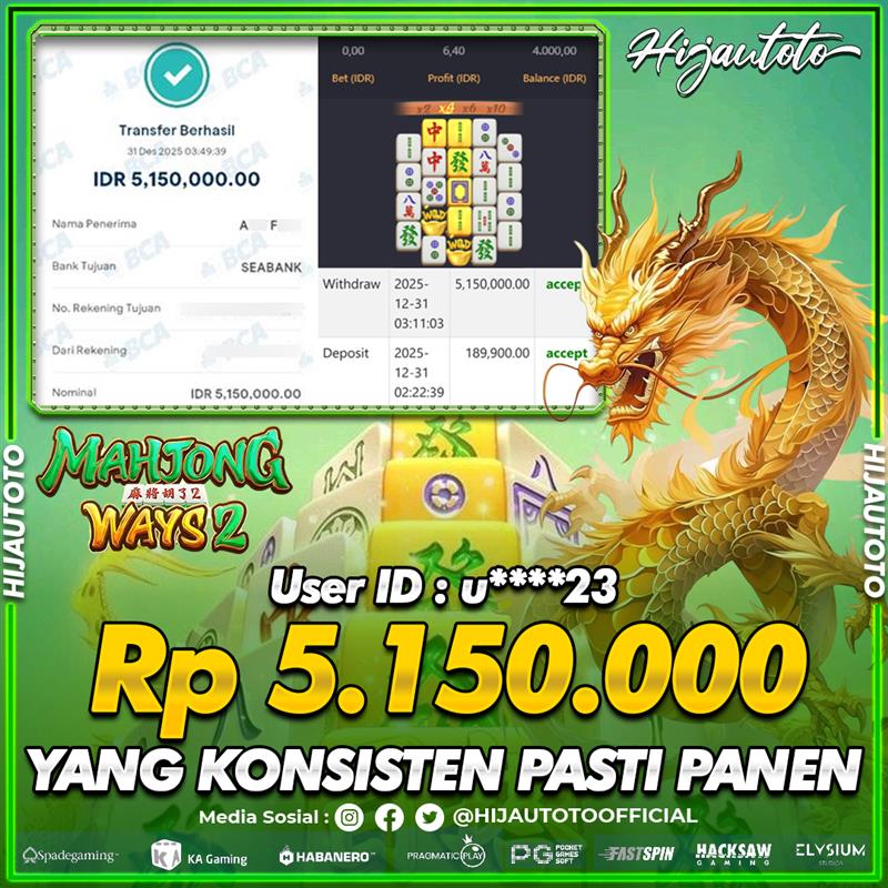 Selamat datang di HIJAUTOTO, tempatnya seru-seruan dan cuan besar! Mulai main cukup dengan modal Rp5.000 aja, taruhan super murah dari Rp100 perak! Mau main slot yang penuh warna? Atau togel dari 20 pasaran paling hits? Atau mungkin tembak ikan yang bikin deg-degan? Tenang, ada juga taruhan bola, sabung ayam, dan live casino yang bikin suasana makin hidup! Daftar sekarang dan dapetin bonus new member 100% langsung, biar modalmu makin tebal. Deposit gampang banget, bisa pakai QRIS, dan kalau butuh bantuan, customer service kita siap 24 jam nonstop. Jadi, tunggu apa lagi? Yuk, gabung dan bawa pulang kemenangannya cuma di HIJAUTOTO!