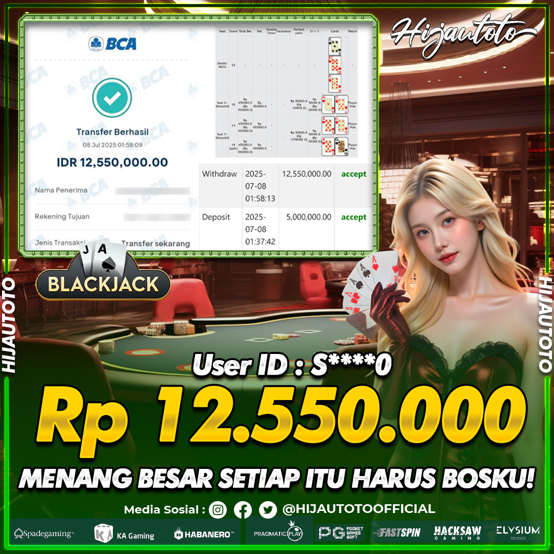 Selamat Kepada Member HIJAUTOTO S****0 Telah Jackpot Di LIVE CASINO BLACKJACK