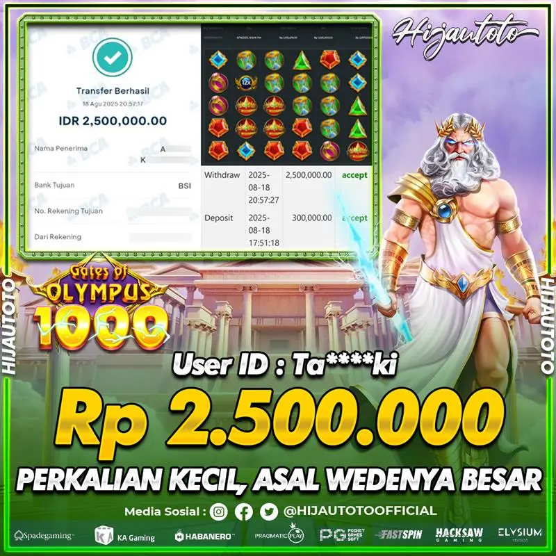 Selamat Kepada Member HIJAUTOTO TA****KI Telah Jackpot Di SLOT GATES OF OLYMPUS 1000