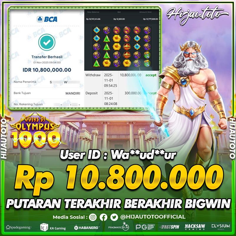 β¨ JACKPOT DI SLOT GATES OF OLYMPUS 1000 β¨