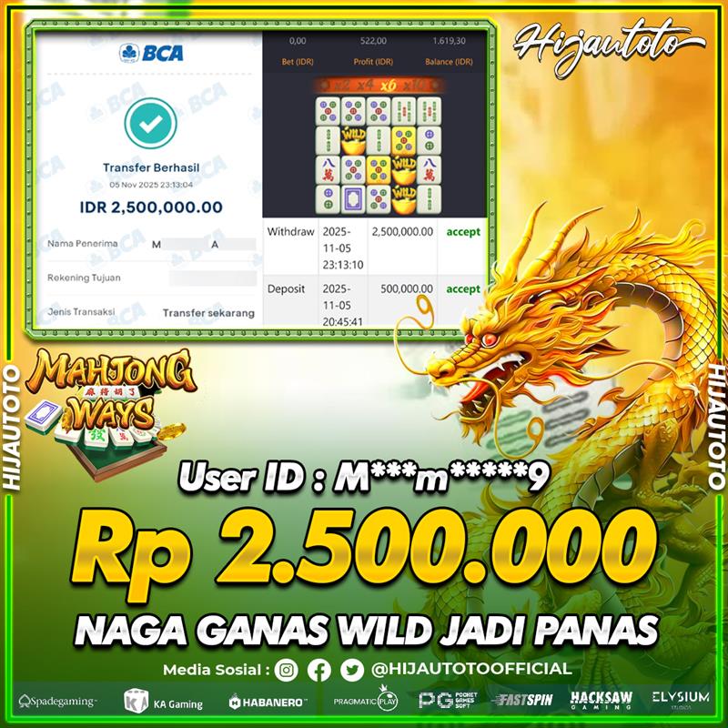 Selamat Kepada Member HIJAUTOTO M***M*****9 Telah Jackpot Di SLOT MAHJONG WAYS