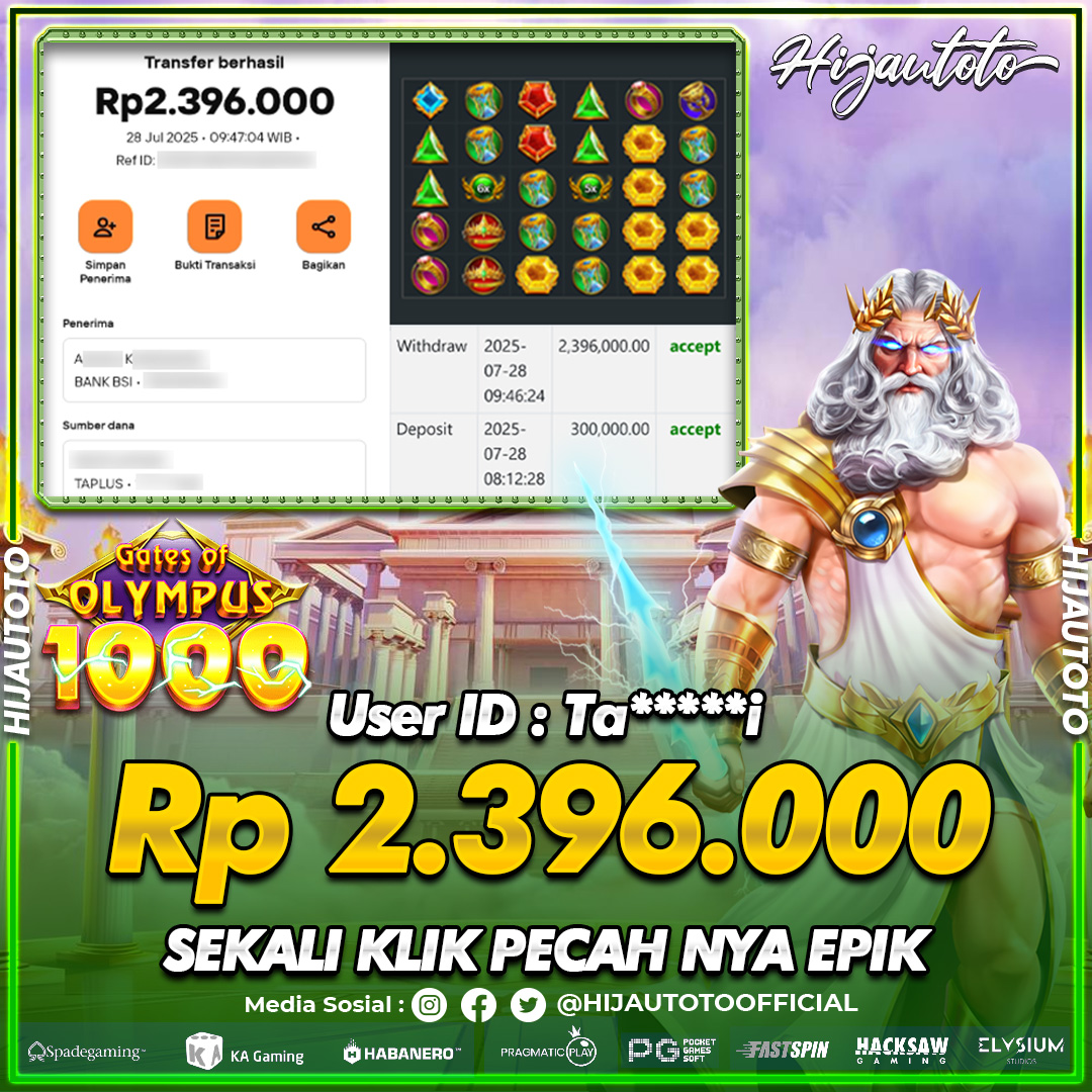 Selamat datang di HIJAUTOTO, tempatnya seru-seruan dan cuan besar! Mulai main cukup dengan modal Rp5.000 aja, taruhan super murah dari Rp100 perak! Mau main slot yang penuh warna? Atau togel dari 20 pasaran paling hits? Atau mungkin tembak ikan yang bikin deg-degan? Tenang, ada juga taruhan bola, sabung ayam, dan live casino yang bikin suasana makin hidup! Daftar sekarang dan dapetin bonus new member 100% langsung, biar modalmu makin tebal. Deposit gampang banget, bisa pakai QRIS, dan kalau butuh bantuan, customer service kita siap 24 jam nonstop. Jadi, tunggu apa lagi? Yuk, gabung dan bawa pulang kemenangannya cuma di HIJAUTOTO!