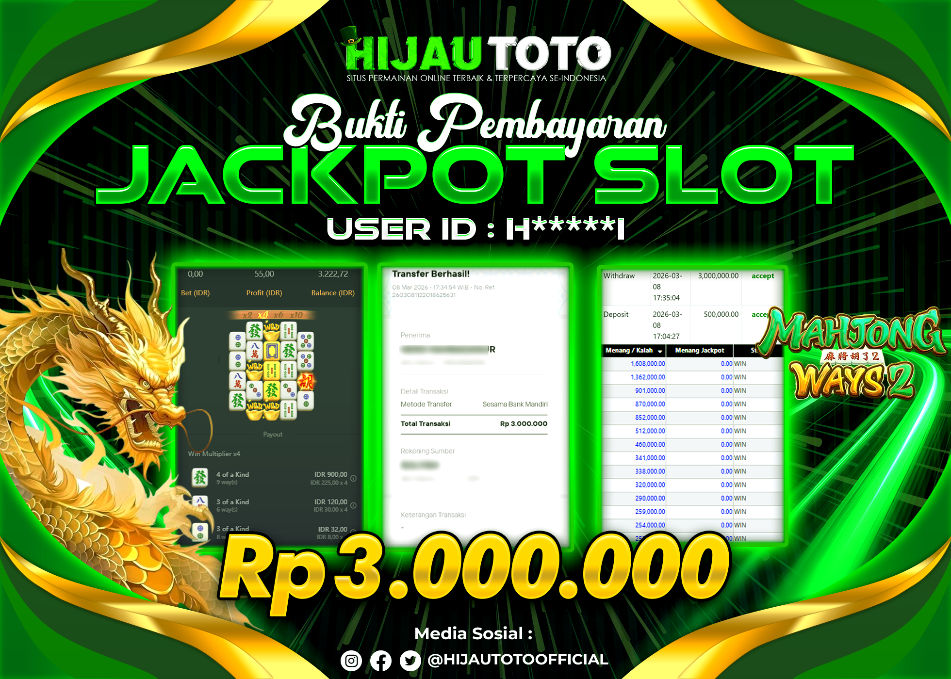 Bergabung dengan HIJAUTOTO sangat mudah dan cepat. Cukup lakukan pendaftaran dengan data lengkap, lakukan deposit minimal Rp5.000 melalui berbagai metode termasuk QRIS, dan mulai bertaruh dengan minimal taruhan Rp100. Dapatkan juga bonus new member 100% untuk modal bermain lebih besar.