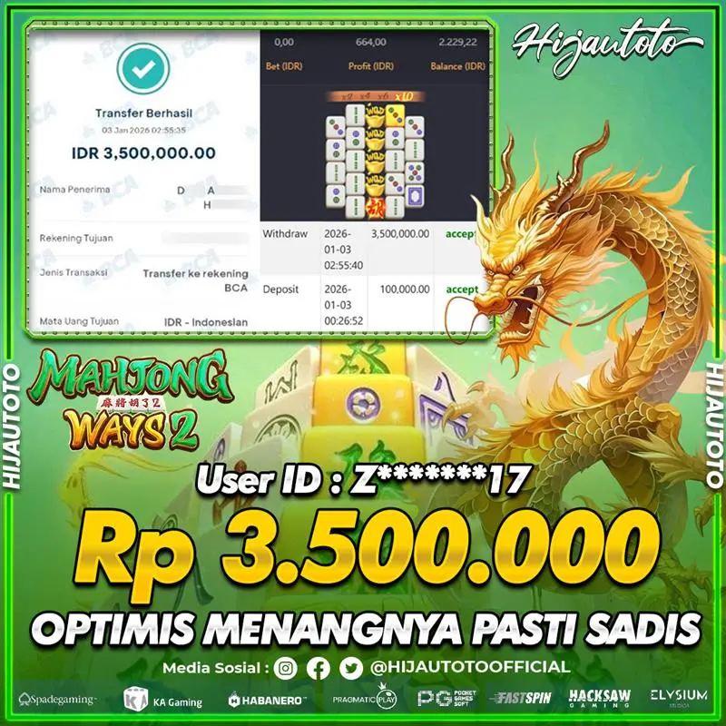 Selamat datang di HIJAUTOTO, tempatnya seru-seruan dan cuan besar! Mulai main cukup dengan modal Rp5.000 aja, taruhan super murah dari Rp100 perak! Mau main slot yang penuh warna? Atau togel dari 20 pasaran paling hits? Atau mungkin tembak ikan yang bikin deg-degan? Tenang, ada juga taruhan bola, sabung ayam, dan live casino yang bikin suasana makin hidup! Daftar sekarang dan dapetin bonus new member 100% langsung, biar modalmu makin tebal. Deposit gampang banget, bisa pakai QRIS, dan kalau butuh bantuan, customer service kita siap 24 jam nonstop. Jadi, tunggu apa lagi? Yuk, gabung dan bawa pulang kemenangannya cuma di HIJAUTOTO!