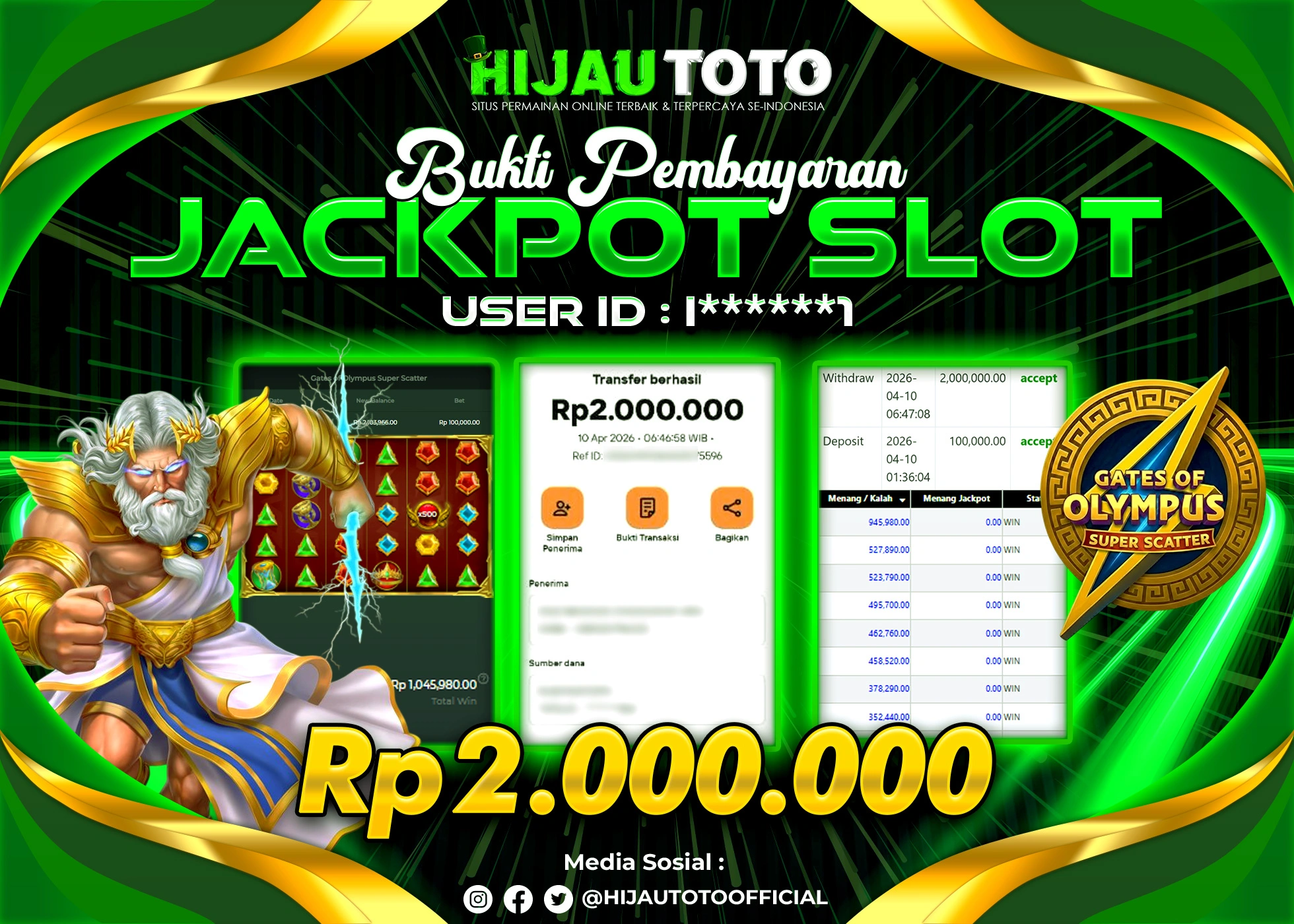Selamat datang di HIJAUTOTO, tempatnya seru-seruan dan cuan besar! Mulai main cukup dengan modal Rp5.000 aja, taruhan super murah dari Rp100 perak! Mau main slot yang penuh warna? Atau togel dari 20 pasaran paling hits? Atau mungkin tembak ikan yang bikin deg-degan? Tenang, ada juga taruhan bola, sabung ayam, dan live casino yang bikin suasana makin hidup! Daftar sekarang dan dapetin bonus new member 100% langsung, biar modalmu makin tebal. Deposit gampang banget, bisa pakai QRIS, dan kalau butuh bantuan, customer service kita siap 24 jam nonstop. Jadi, tunggu apa lagi? Yuk, gabung dan bawa pulang kemenangannya cuma di HIJAUTOTO!