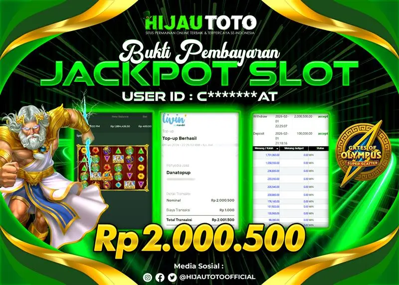 Selamat datang di HIJAUTOTO, tempatnya seru-seruan dan cuan besar! Mulai main cukup dengan modal Rp5.000 aja, taruhan super murah dari Rp100 perak! Mau main slot yang penuh warna? Atau togel dari 20 pasaran paling hits? Atau mungkin tembak ikan yang bikin deg-degan? Tenang, ada juga taruhan bola, sabung ayam, dan live casino yang bikin suasana makin hidup! Daftar sekarang dan dapetin bonus new member 100% langsung, biar modalmu makin tebal. Deposit gampang banget, bisa pakai QRIS, dan kalau butuh bantuan, customer service kita siap 24 jam nonstop. Jadi, tunggu apa lagi? Yuk, gabung dan bawa pulang kemenangannya cuma di HIJAUTOTO!