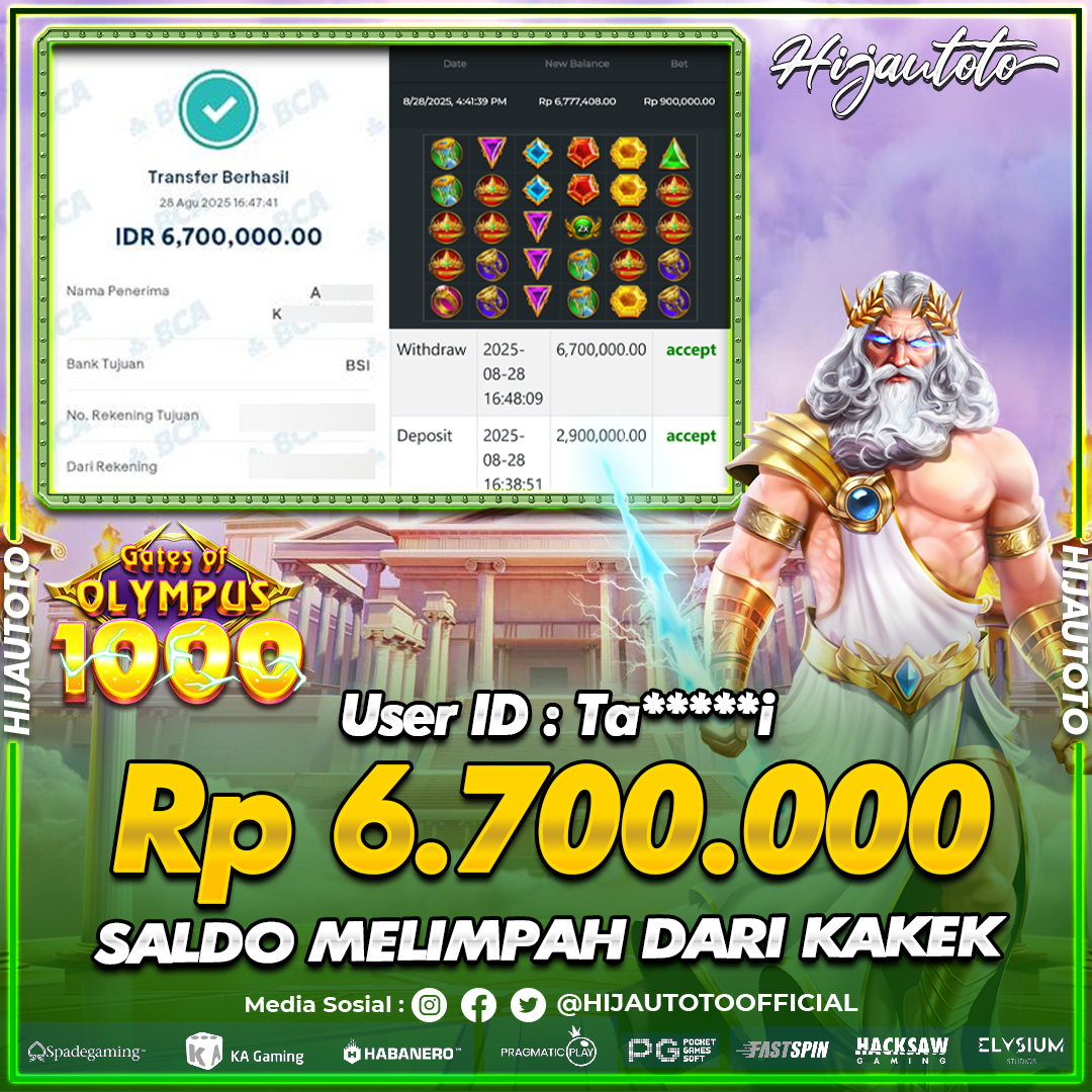 Cuma di HIJAUTOTO, tempat paling AMAN, CEPAT, & TERPERCAYA buat pecinta game SLOT GATES OF OLYMPUS SUPER SCATTER!
