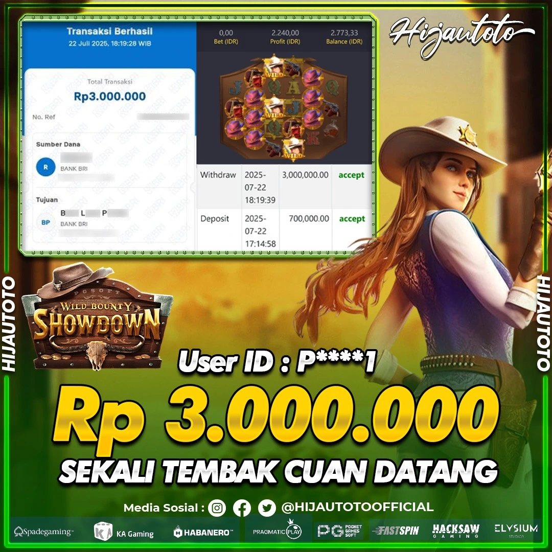 Cuma di HIJAUTOTO, tempat paling AMAN, CEPAT, & TERPERCAYA buat pecinta game SLOT WILD BOUNTY SHOWDOWN!