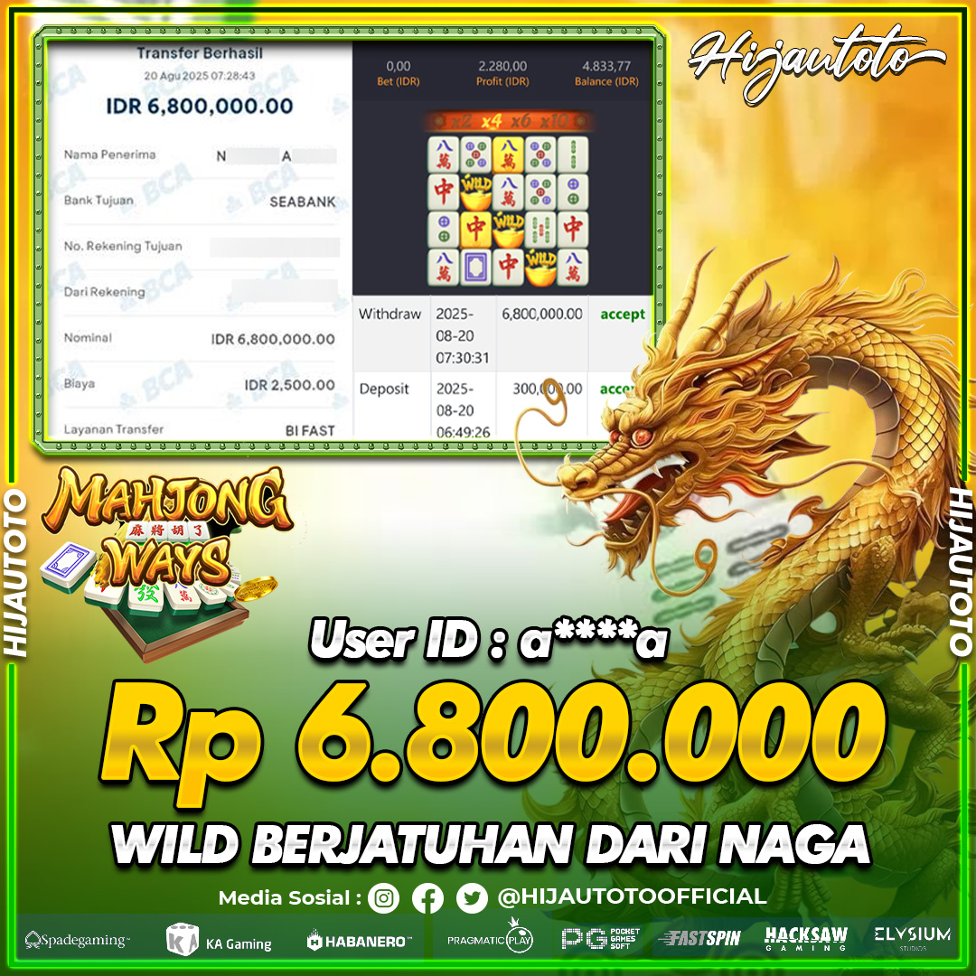 Selamat datang di HIJAUTOTO, tempatnya seru-seruan dan cuan besar! Mulai main cukup dengan modal Rp5.000 aja, taruhan super murah dari Rp100 perak! Mau main slot yang penuh warna? Atau togel dari 20 pasaran paling hits? Atau mungkin tembak ikan yang bikin deg-degan? Tenang, ada juga taruhan bola, sabung ayam, dan live casino yang bikin suasana makin hidup! Daftar sekarang dan dapetin bonus new member 100% langsung, biar modalmu makin tebal. Deposit gampang banget, bisa pakai QRIS, dan kalau butuh bantuan, customer service kita siap 24 jam nonstop. Jadi, tunggu apa lagi? Yuk, gabung dan bawa pulang kemenangannya cuma di HIJAUTOTO!