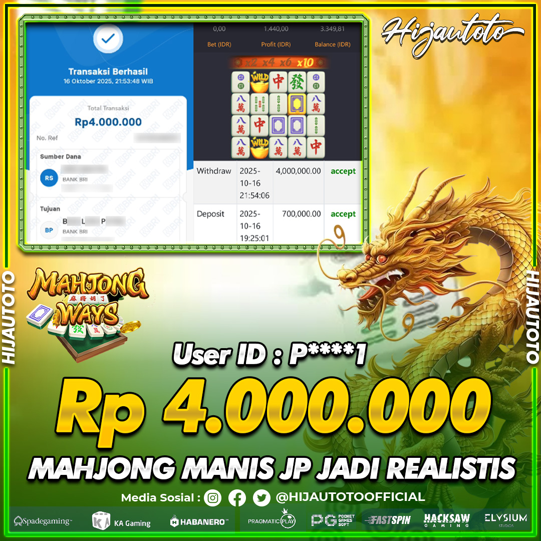 Selamat datang di HIJAUTOTO, tempatnya seru-seruan dan cuan besar! Mulai main cukup dengan modal Rp5.000 aja, taruhan super murah dari Rp100 perak! Mau main slot yang penuh warna? Atau togel dari 20 pasaran paling hits? Atau mungkin tembak ikan yang bikin deg-degan? Tenang, ada juga taruhan bola, sabung ayam, dan live casino yang bikin suasana makin hidup! Daftar sekarang dan dapetin bonus new member 100% langsung, biar modalmu makin tebal. Deposit gampang banget, bisa pakai QRIS, dan kalau butuh bantuan, customer service kita siap 24 jam nonstop. Jadi, tunggu apa lagi? Yuk, gabung dan bawa pulang kemenangannya cuma di HIJAUTOTO!