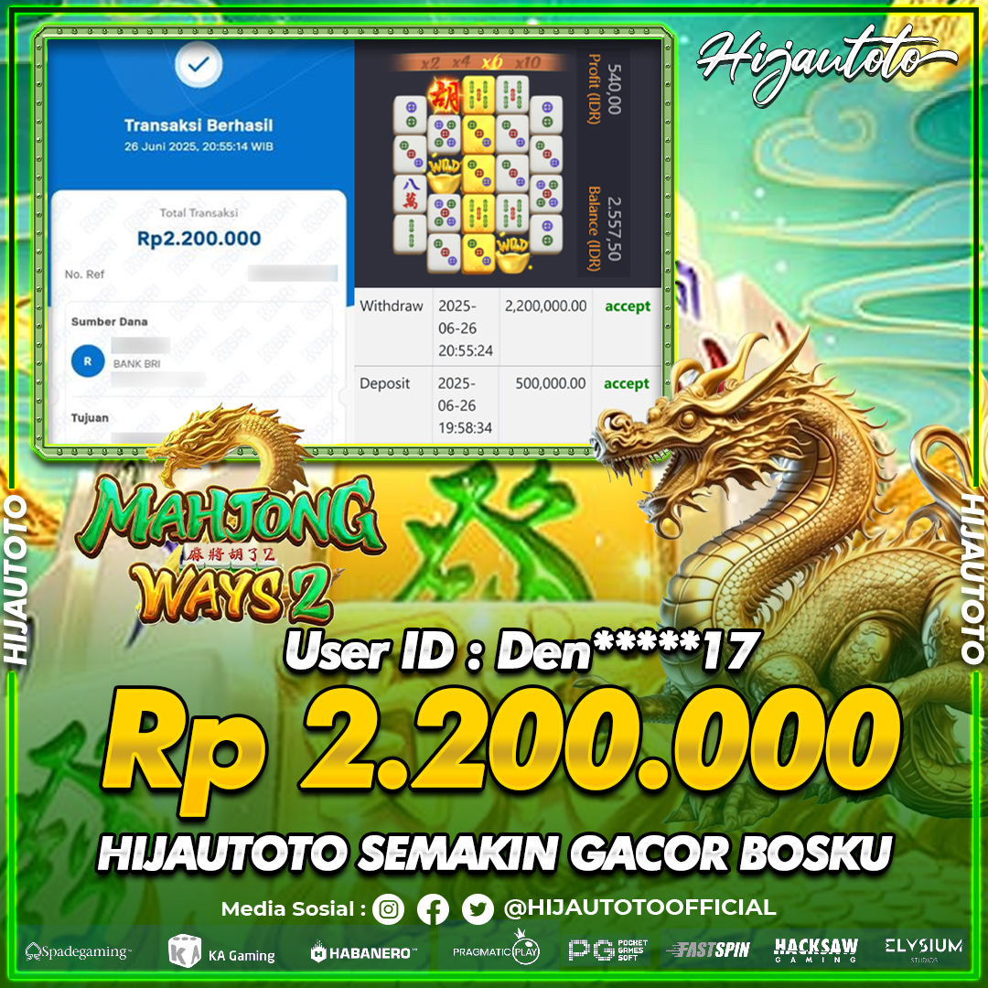 Karena berhasil memenangkan Rp.Rp.3.000.000 dari permainan seru SLOT MAHJONG WAYS 2 di HIJAUTOTO! πŸ’°πŸ’Έ