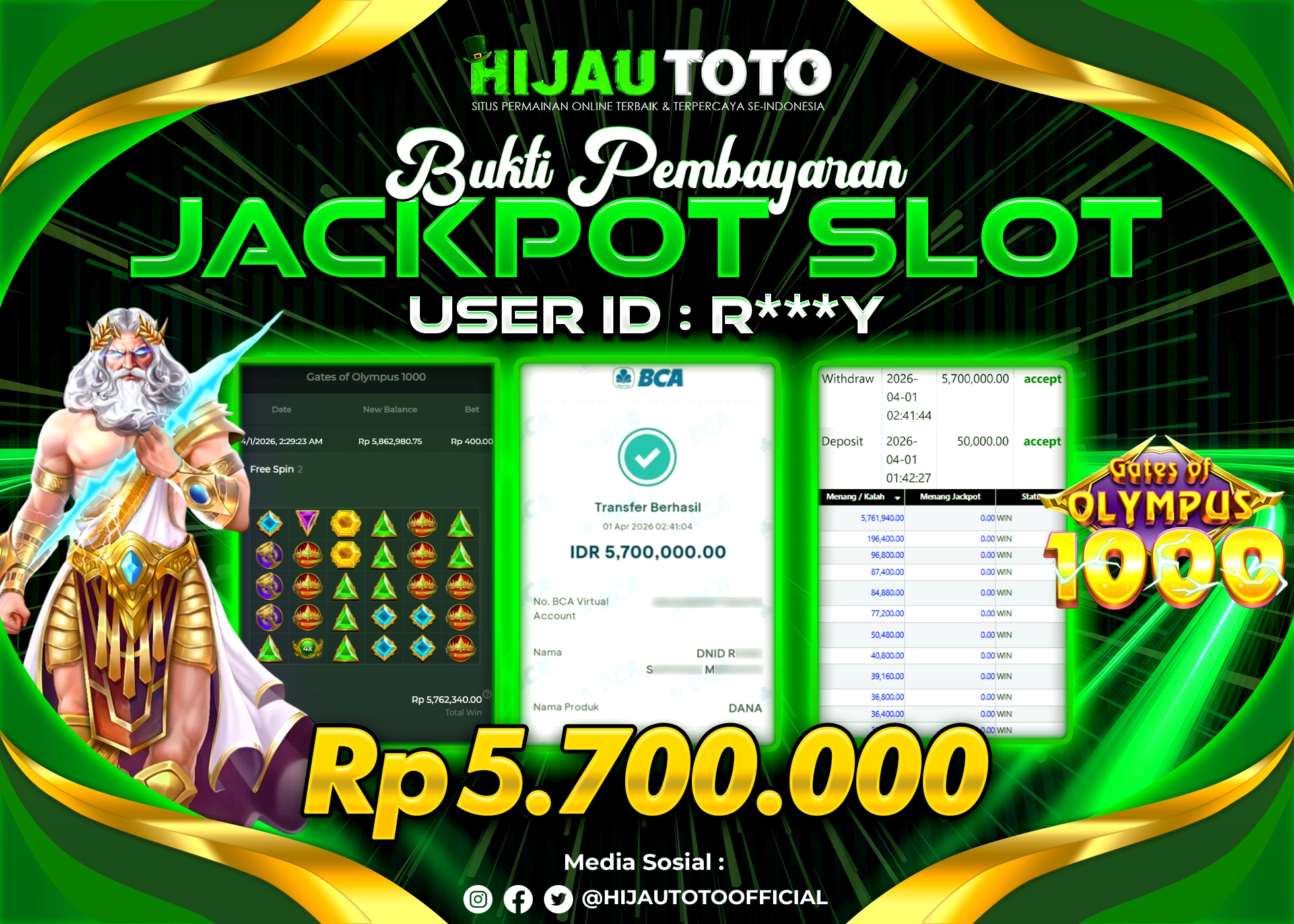 Bergabung dengan HIJAUTOTO sangat mudah dan cepat. Cukup lakukan pendaftaran dengan data lengkap, lakukan deposit minimal Rp5.000 melalui berbagai metode termasuk QRIS, dan mulai bertaruh dengan minimal taruhan Rp100. Dapatkan juga bonus new member 100% untuk modal bermain lebih besar.