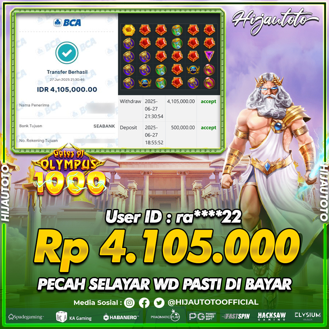 Selamat datang di HIJAUTOTO, tempatnya seru-seruan dan cuan besar! Mulai main cukup dengan modal Rp5.000 aja, taruhan super murah dari Rp100 perak! Mau main slot yang penuh warna? Atau togel dari 20 pasaran paling hits? Atau mungkin tembak ikan yang bikin deg-degan? Tenang, ada juga taruhan bola, sabung ayam, dan live casino yang bikin suasana makin hidup! Daftar sekarang dan dapetin bonus new member 100% langsung, biar modalmu makin tebal. Deposit gampang banget, bisa pakai QRIS, dan kalau butuh bantuan, customer service kita siap 24 jam nonstop. Jadi, tunggu apa lagi? Yuk, gabung dan bawa pulang kemenangannya cuma di HIJAUTOTO!