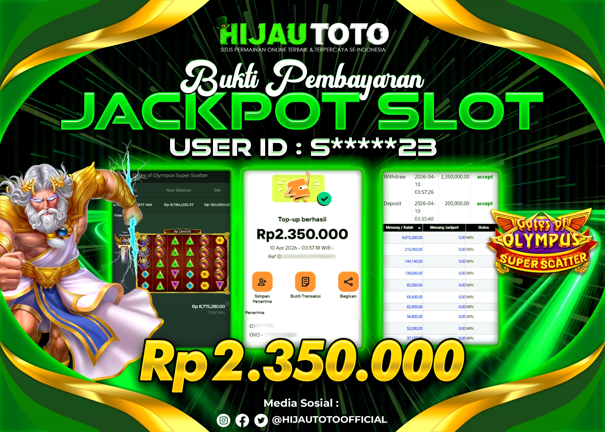Selamat datang di HIJAUTOTO, tempatnya seru-seruan dan cuan besar! Mulai main cukup dengan modal Rp5.000 aja, taruhan super murah dari Rp100 perak! Mau main slot yang penuh warna? Atau togel dari 20 pasaran paling hits? Atau mungkin tembak ikan yang bikin deg-degan? Tenang, ada juga taruhan bola, sabung ayam, dan live casino yang bikin suasana makin hidup! Daftar sekarang dan dapetin bonus new member 100% langsung, biar modalmu makin tebal. Deposit gampang banget, bisa pakai QRIS, dan kalau butuh bantuan, customer service kita siap 24 jam nonstop. Jadi, tunggu apa lagi? Yuk, gabung dan bawa pulang kemenangannya cuma di HIJAUTOTO!
