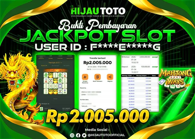 Karena berhasil memenangkan Rp.Rp.6.000.000 dari permainan seru SLOT MAHJONG WAYS di HIJAUTOTO! πŸ’°πŸ’Έ