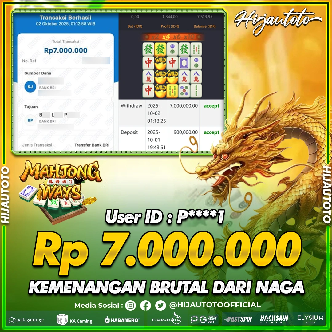 Karena berhasil memenangkan Rp.Rp.9.000.000 dari permainan seru SLOT MAHJONG WAYS di HIJAUTOTO! πŸ’°πŸ’Έ