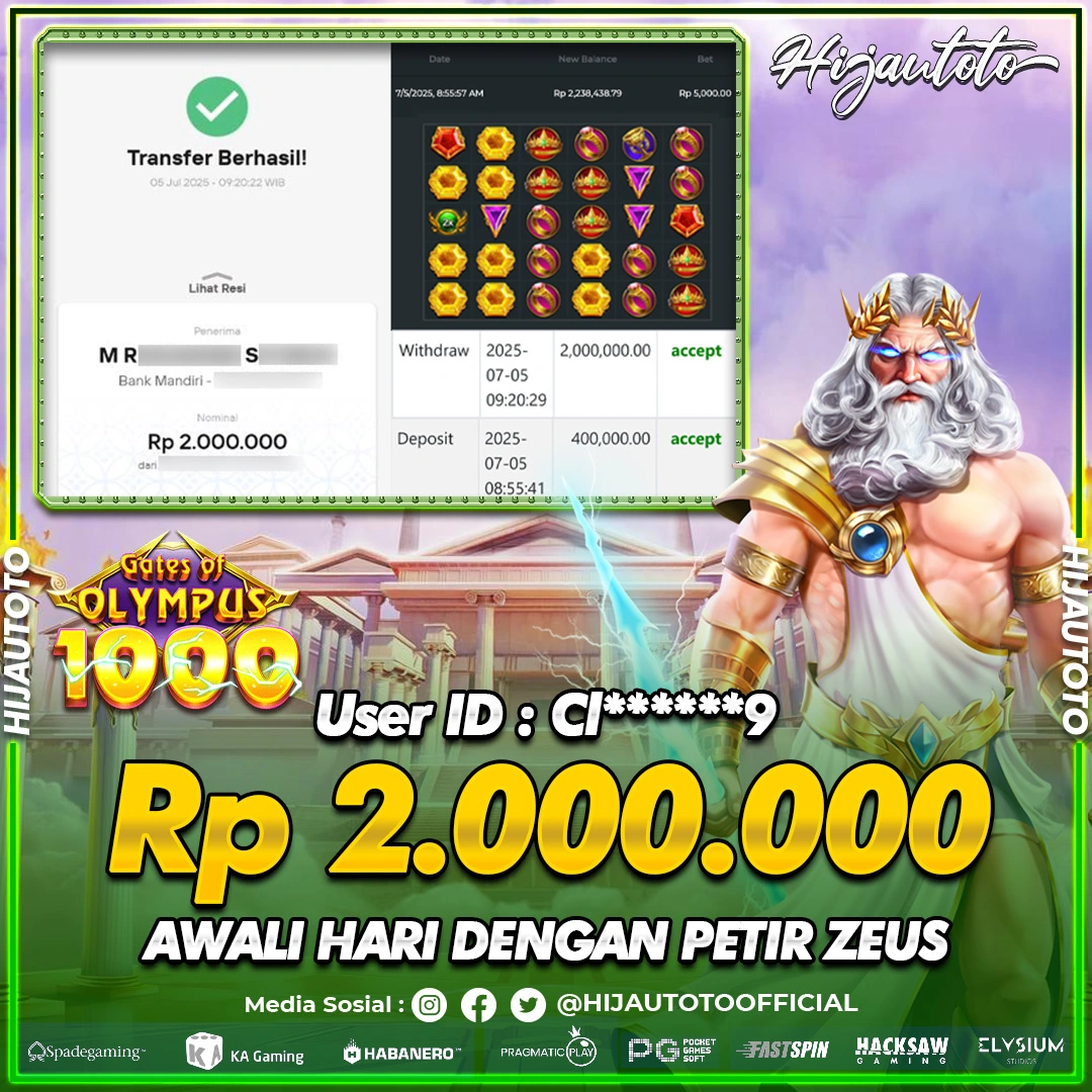 Selamat Kepada Member HIJAUTOTO CI******9 Telah Jackpot Di SLOT GATES OF OLYMPUS 1000