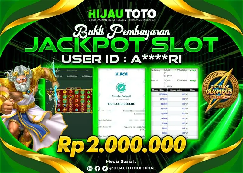 Selamat datang di HIJAUTOTO, tempatnya seru-seruan dan cuan besar! Mulai main cukup dengan modal Rp5.000 aja, taruhan super murah dari Rp100 perak! Mau main slot yang penuh warna? Atau togel dari 20 pasaran paling hits? Atau mungkin tembak ikan yang bikin deg-degan? Tenang, ada juga taruhan bola, sabung ayam, dan live casino yang bikin suasana makin hidup! Daftar sekarang dan dapetin bonus new member 100% langsung, biar modalmu makin tebal. Deposit gampang banget, bisa pakai QRIS, dan kalau butuh bantuan, customer service kita siap 24 jam nonstop. Jadi, tunggu apa lagi? Yuk, gabung dan bawa pulang kemenangannya cuma di HIJAUTOTO!