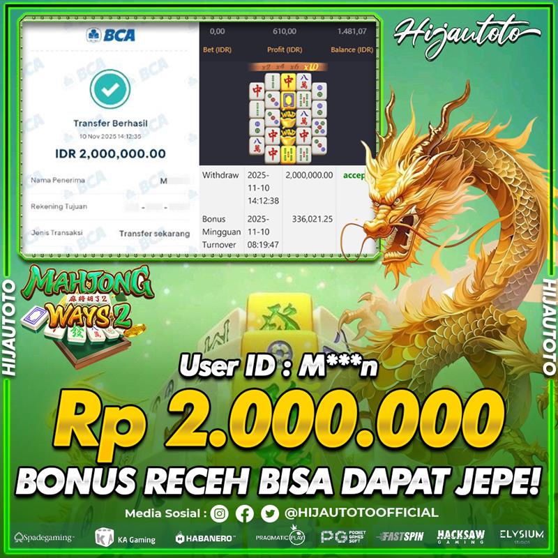 Selamat datang di HIJAUTOTO, tempatnya seru-seruan dan cuan besar! Mulai main cukup dengan modal Rp5.000 aja, taruhan super murah dari Rp100 perak! Mau main slot yang penuh warna? Atau togel dari 20 pasaran paling hits? Atau mungkin tembak ikan yang bikin deg-degan? Tenang, ada juga taruhan bola, sabung ayam, dan live casino yang bikin suasana makin hidup! Daftar sekarang dan dapetin bonus new member 100% langsung, biar modalmu makin tebal. Deposit gampang banget, bisa pakai QRIS, dan kalau butuh bantuan, customer service kita siap 24 jam nonstop. Jadi, tunggu apa lagi? Yuk, gabung dan bawa pulang kemenangannya cuma di HIJAUTOTO!