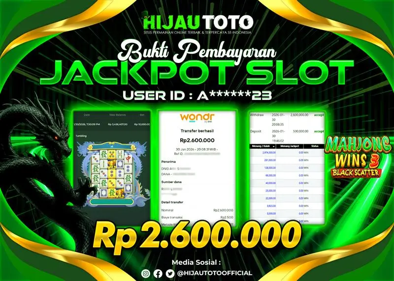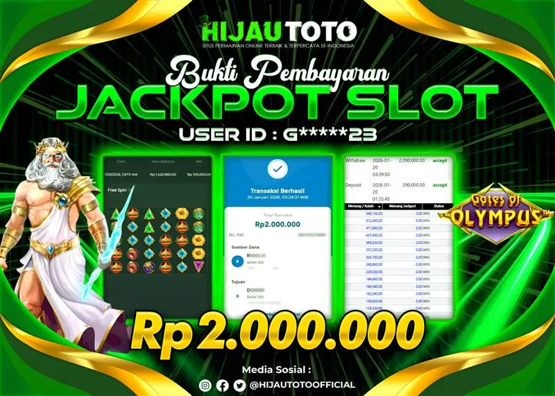 Selamat datang di HIJAUTOTO, tempatnya seru-seruan dan cuan besar! Mulai main cukup dengan modal Rp5.000 aja, taruhan super murah dari Rp100 perak! Mau main slot yang penuh warna? Atau togel dari 20 pasaran paling hits? Atau mungkin tembak ikan yang bikin deg-degan? Tenang, ada juga taruhan bola, sabung ayam, dan live casino yang bikin suasana makin hidup! Daftar sekarang dan dapetin bonus new member 100% langsung, biar modalmu makin tebal. Deposit gampang banget, bisa pakai QRIS, dan kalau butuh bantuan, customer service kita siap 24 jam nonstop. Jadi, tunggu apa lagi? Yuk, gabung dan bawa pulang kemenangannya cuma di HIJAUTOTO!