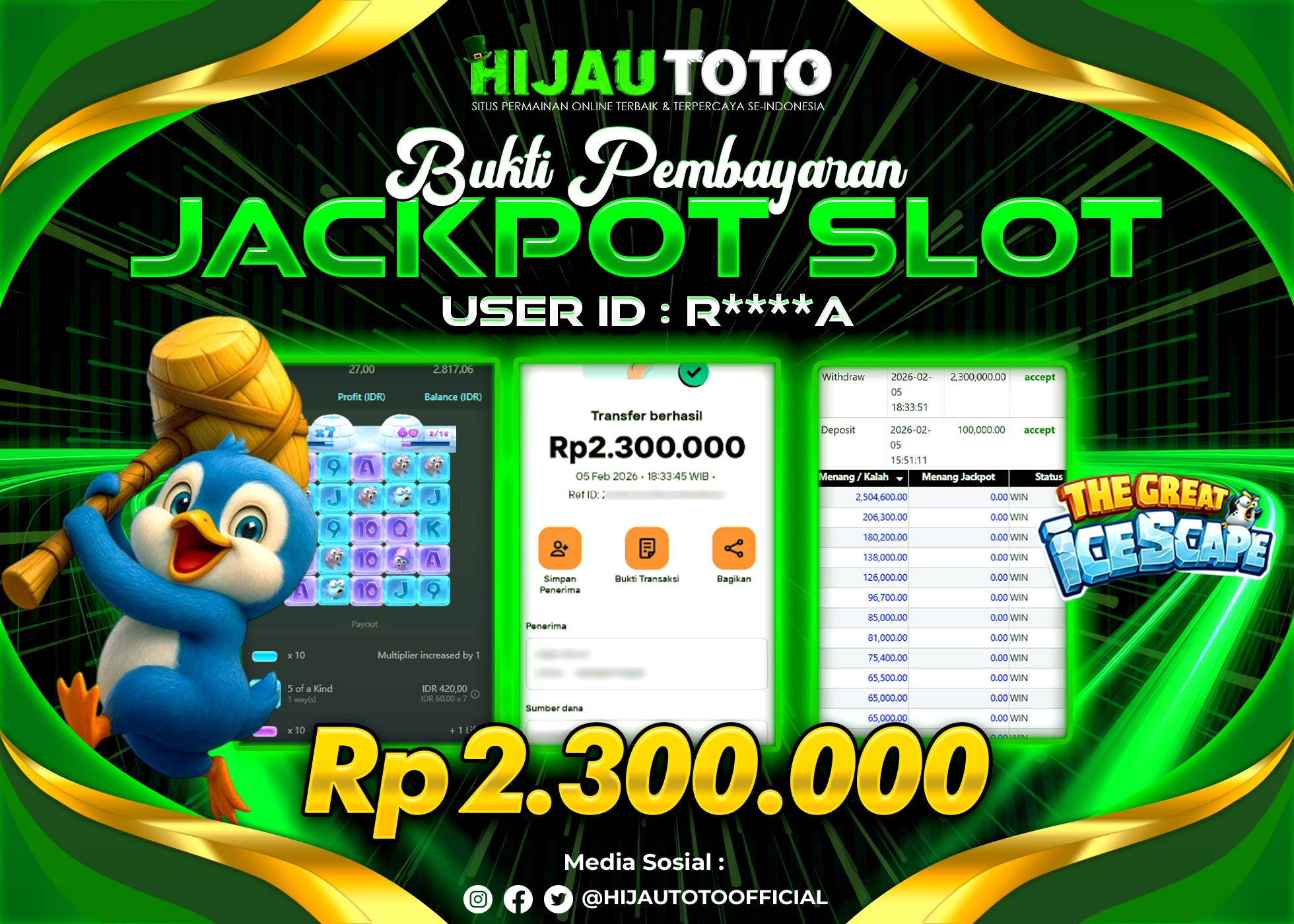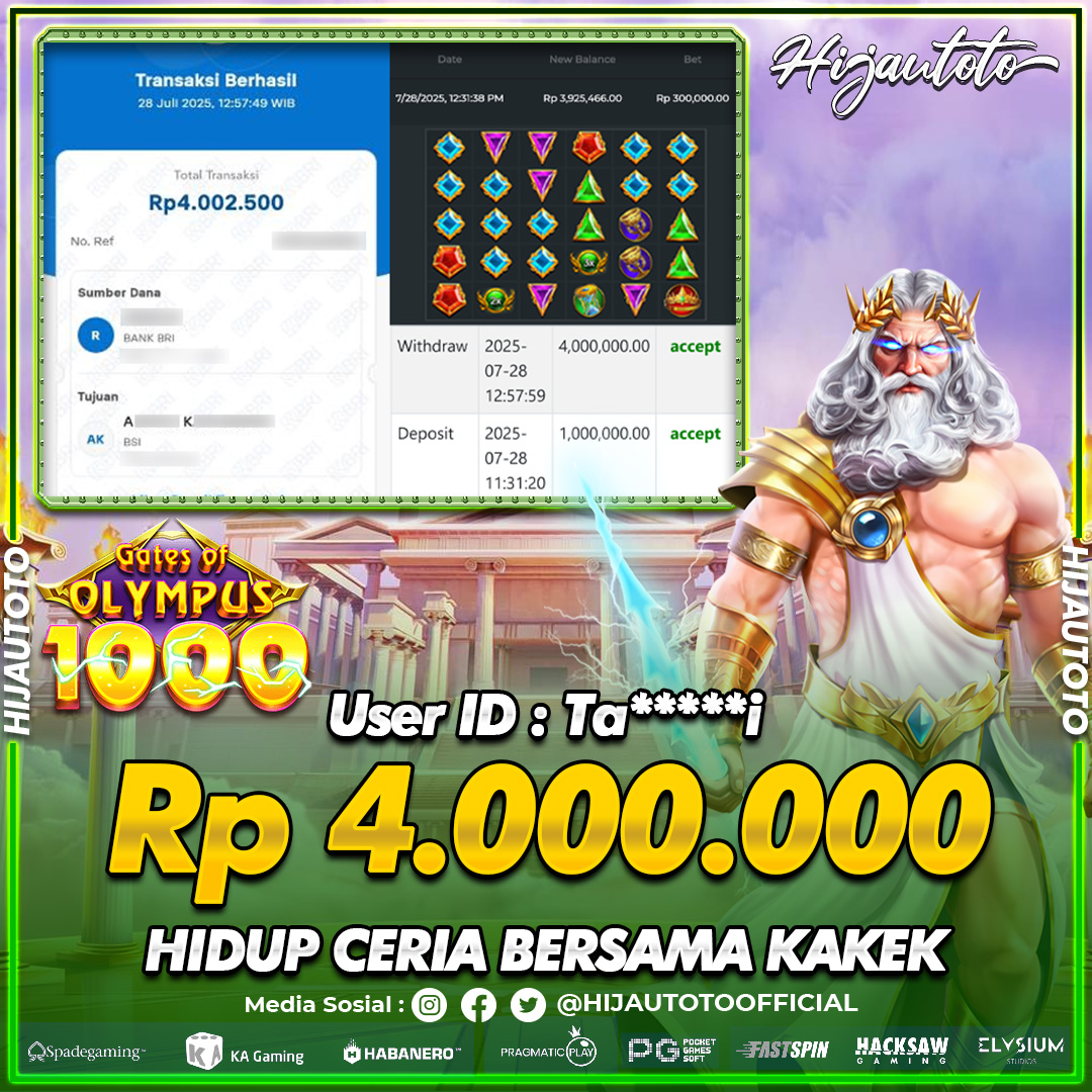 Selamat datang di HIJAUTOTO, tempatnya seru-seruan dan cuan besar! Mulai main cukup dengan modal Rp5.000 aja, taruhan super murah dari Rp100 perak! Mau main slot yang penuh warna? Atau togel dari 20 pasaran paling hits? Atau mungkin tembak ikan yang bikin deg-degan? Tenang, ada juga taruhan bola, sabung ayam, dan live casino yang bikin suasana makin hidup! Daftar sekarang dan dapetin bonus new member 100% langsung, biar modalmu makin tebal. Deposit gampang banget, bisa pakai QRIS, dan kalau butuh bantuan, customer service kita siap 24 jam nonstop. Jadi, tunggu apa lagi? Yuk, gabung dan bawa pulang kemenangannya cuma di HIJAUTOTO!