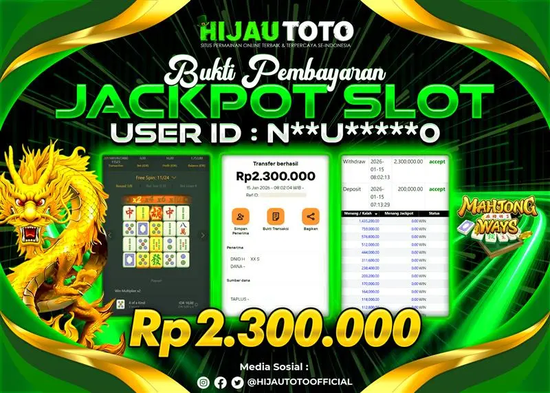 Selamat datang di HIJAUTOTO, tempatnya seru-seruan dan cuan besar! Mulai main cukup dengan modal Rp5.000 aja, taruhan super murah dari Rp100 perak! Mau main slot yang penuh warna? Atau togel dari 20 pasaran paling hits? Atau mungkin tembak ikan yang bikin deg-degan? Tenang, ada juga taruhan bola, sabung ayam, dan live casino yang bikin suasana makin hidup! Daftar sekarang dan dapetin bonus new member 100% langsung, biar modalmu makin tebal. Deposit gampang banget, bisa pakai QRIS, dan kalau butuh bantuan, customer service kita siap 24 jam nonstop. Jadi, tunggu apa lagi? Yuk, gabung dan bawa pulang kemenangannya cuma di HIJAUTOTO!