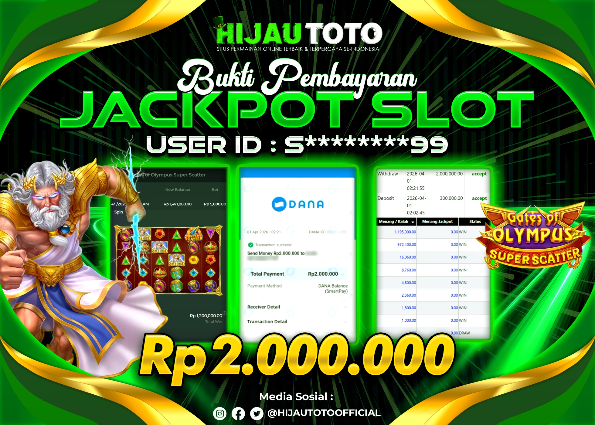 Selamat datang di HIJAUTOTO, tempatnya seru-seruan dan cuan besar! Mulai main cukup dengan modal Rp5.000 aja, taruhan super murah dari Rp100 perak! Mau main slot yang penuh warna? Atau togel dari 20 pasaran paling hits? Atau mungkin tembak ikan yang bikin deg-degan? Tenang, ada juga taruhan bola, sabung ayam, dan live casino yang bikin suasana makin hidup! Daftar sekarang dan dapetin bonus new member 100% langsung, biar modalmu makin tebal. Deposit gampang banget, bisa pakai QRIS, dan kalau butuh bantuan, customer service kita siap 24 jam nonstop. Jadi, tunggu apa lagi? Yuk, gabung dan bawa pulang kemenangannya cuma di HIJAUTOTO!