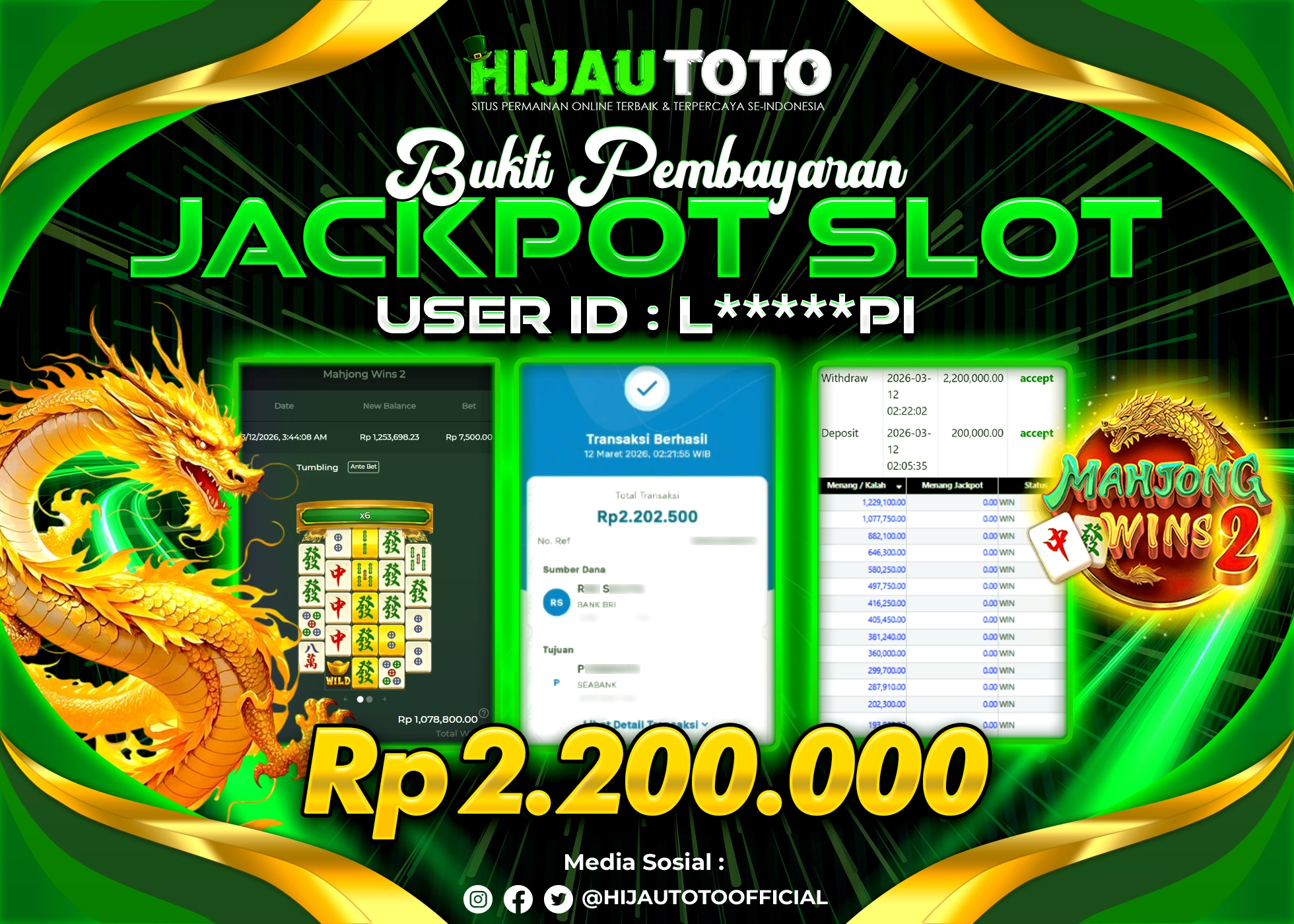 Bergabung dengan HIJAUTOTO sangat mudah dan cepat. Cukup lakukan pendaftaran dengan data lengkap, lakukan deposit minimal Rp5.000 melalui berbagai metode termasuk QRIS, dan mulai bertaruh dengan minimal taruhan Rp100. Dapatkan juga bonus new member 100% untuk modal bermain lebih besar.